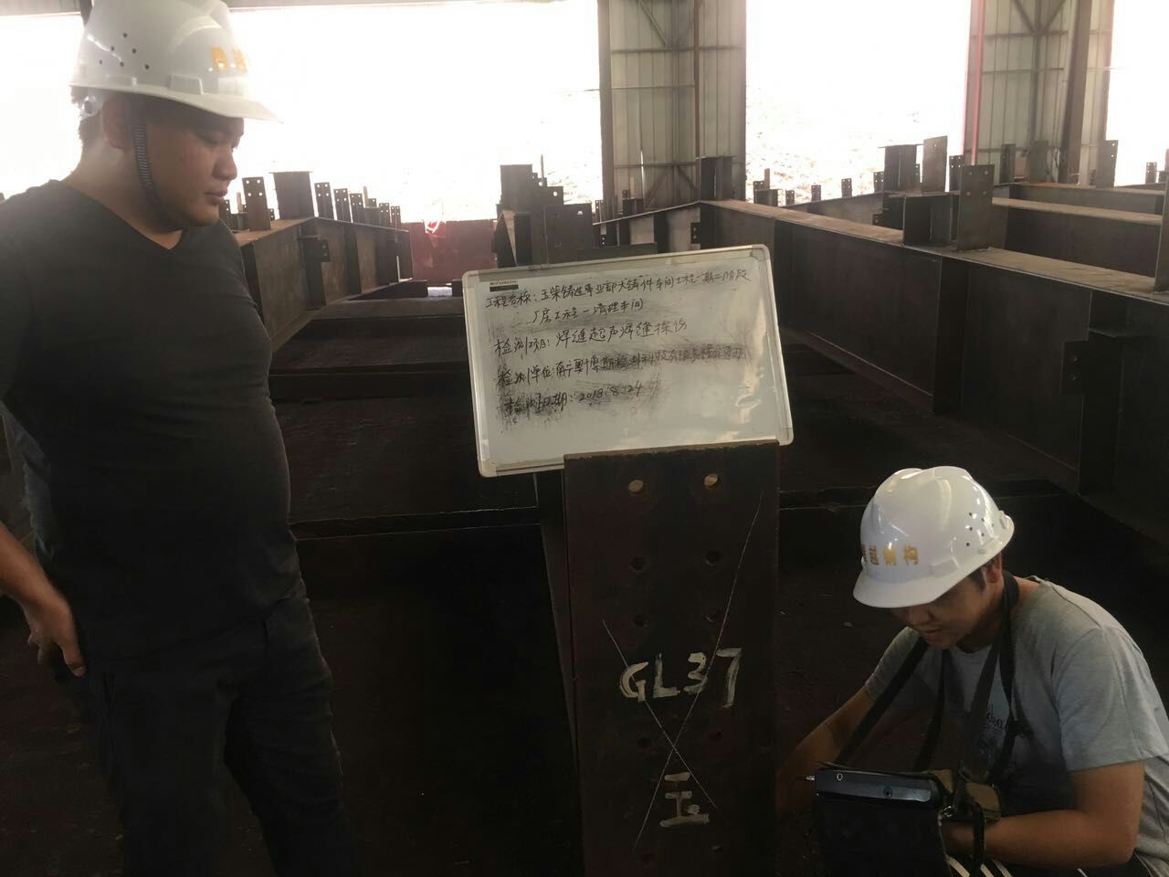 防城港市沙潭江生態(tài)工程產(chǎn)業(yè)園啟動(dòng)區(qū)(一期),A棟工廠制作焊縫超聲波檢測(cè)現(xiàn)場(chǎng)