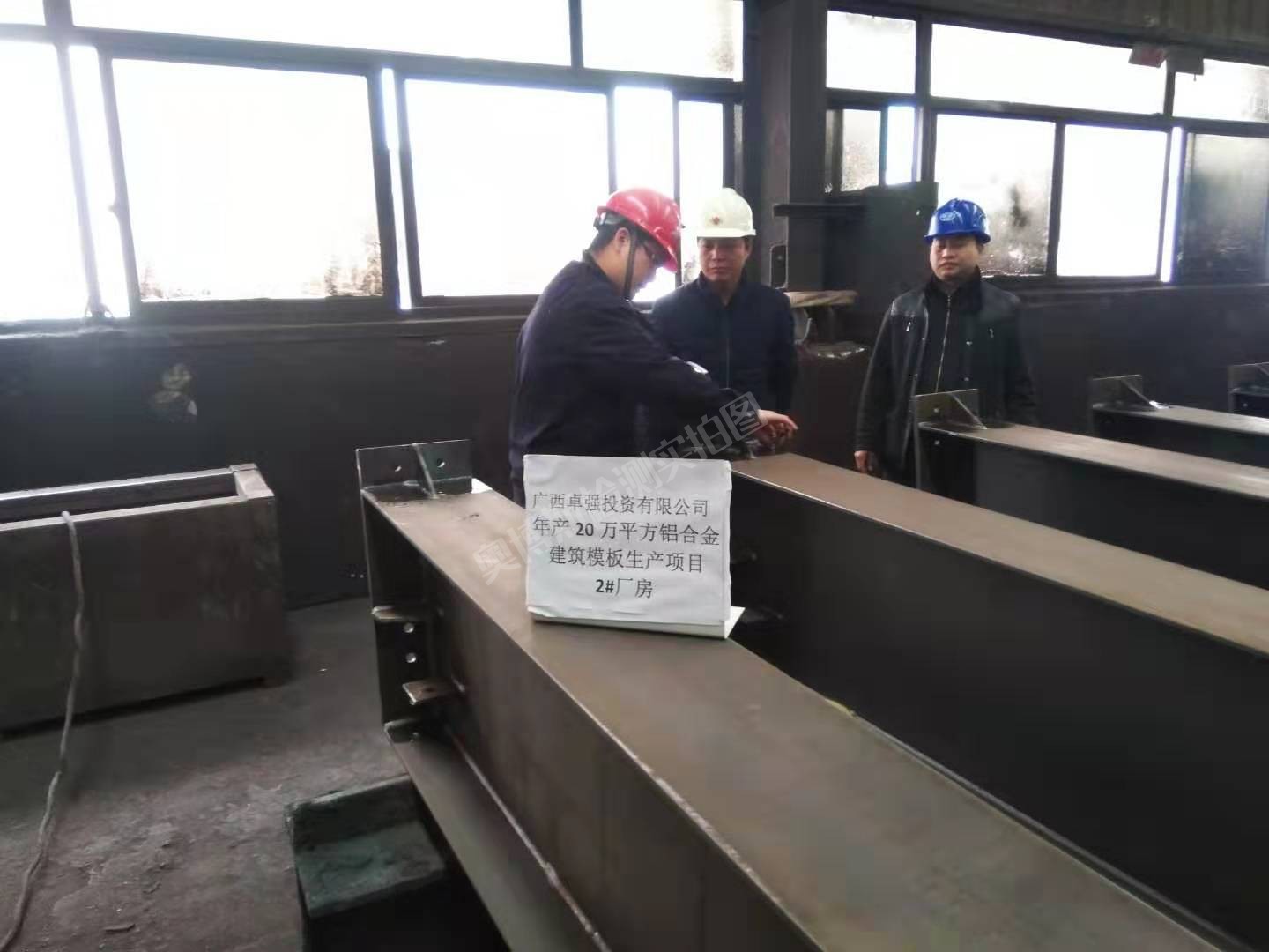 扶綏豐原中巢鋼構(gòu)-廣西卓強(qiáng)投資有限公司年產(chǎn)20萬(wàn)平方鋁合金建筑模板生產(chǎn)項(xiàng)目2#廠房檢測(cè)現(xiàn)場(chǎng)