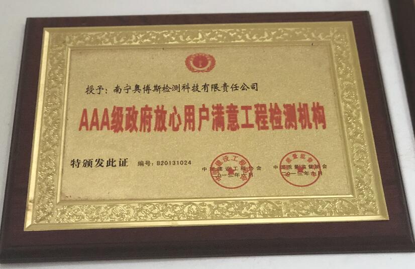 AAA級政府放心用戶滿意工程檢測機(jī)構(gòu)