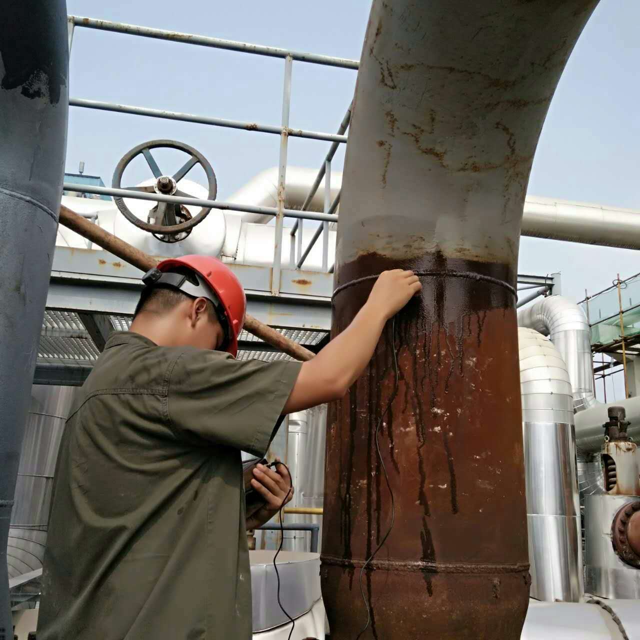 公司檢測人員在廣西來賓電廠用超聲波儀器進(jìn)行焊縫探傷檢測。