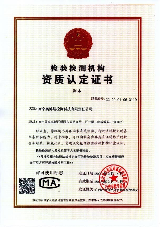 檢驗檢測機(jī)構(gòu)資質(zhì)認(rèn)定證書